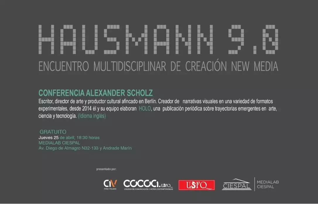 En el marco de Hausmann 9.0: Encuentro Multidisciplinar de creación new media, Alexander Scholz, reconocido escritor, director de arte y productor cultural radicado en Berlín,…